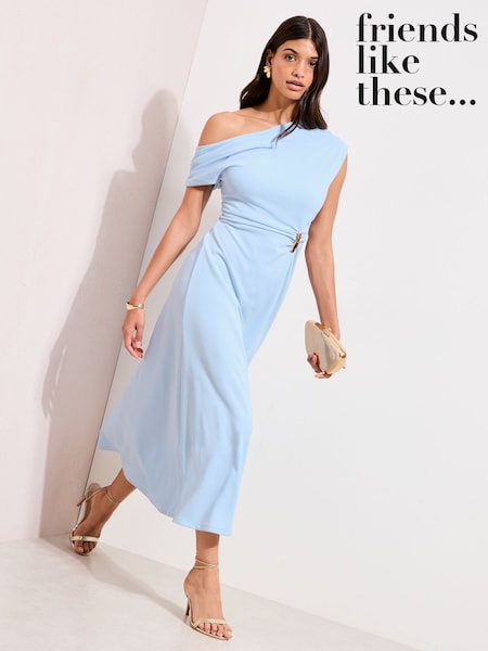 Friends Like These Light Blue Off the Shoulder Hardware Detail Midi Dress