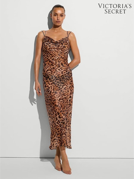 Victoria's Secret Leopard Brown Shimmer Chiffon Draped Maxi Slip Dress