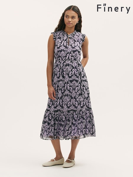 Yumi Purple Abstract Floral Halter Neck Pleated Midi Dress
