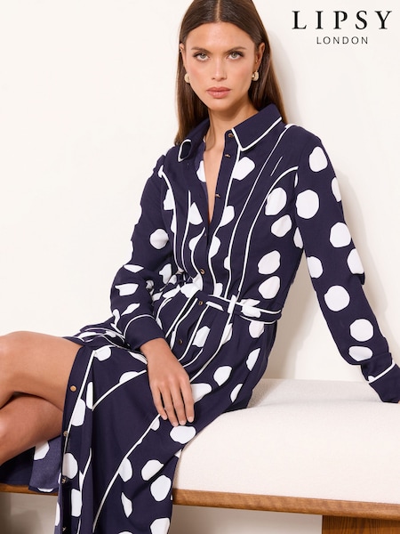 Lipsy Navy Spot Shirt Midi Dress