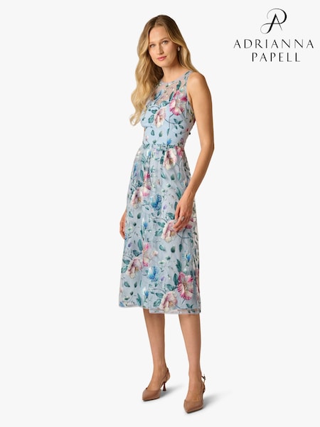 Adrianna Papell Blue Embroidered Dress