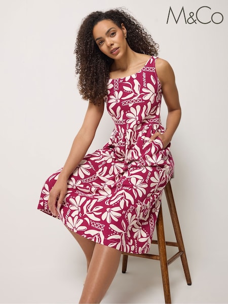 M&Co Purple Fit & Flare Linen Blend Dress