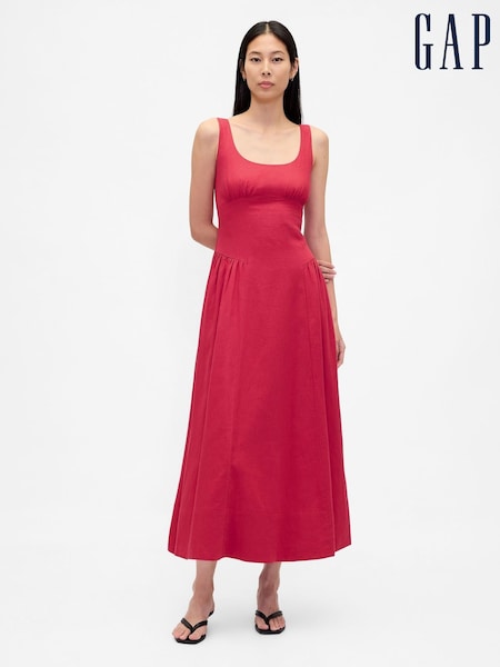Gap Red Linen Blend Shirred Maxi Dress