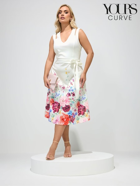 Yours Curve White London Floral Skater Midi Dress