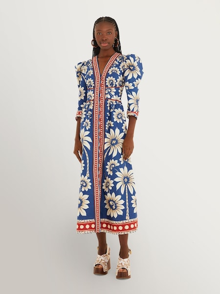 Farm Rio Blue Luna Floral Print Cotton Maxi Dress