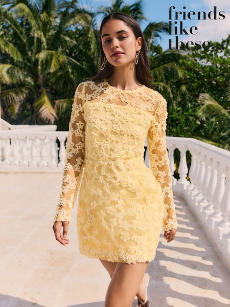 Friends Like These Yellow Lace Long sleeve Mini Dress