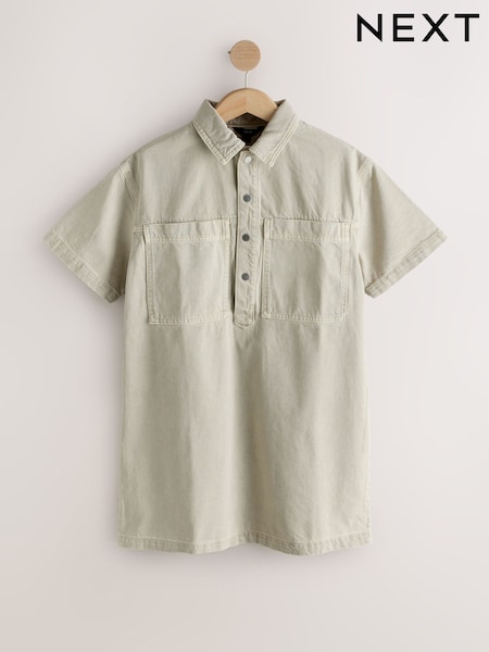 Stone Short Sleeve Utility Denim Dress