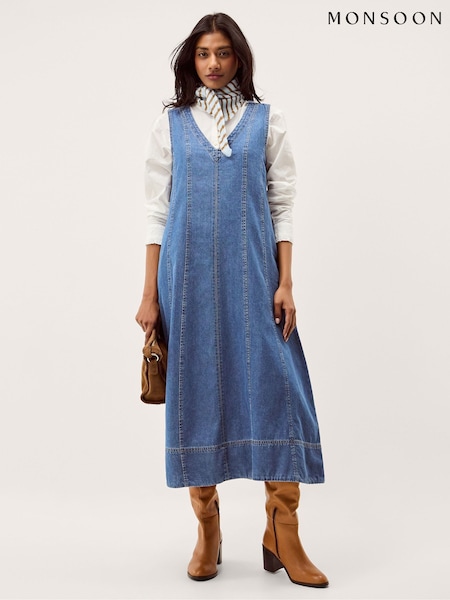 Monsoon Blue Tessa Sleeveless Denim Midi Dress