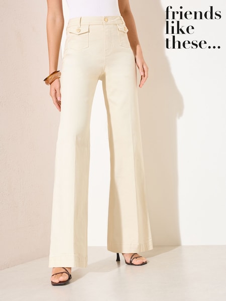 Friends Like These Cream Pocket Tailored Wide Leg Jeans
