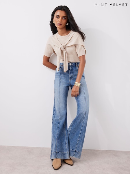 Mint Velvet Blue Relaxed Seam Detail Wide Jeans