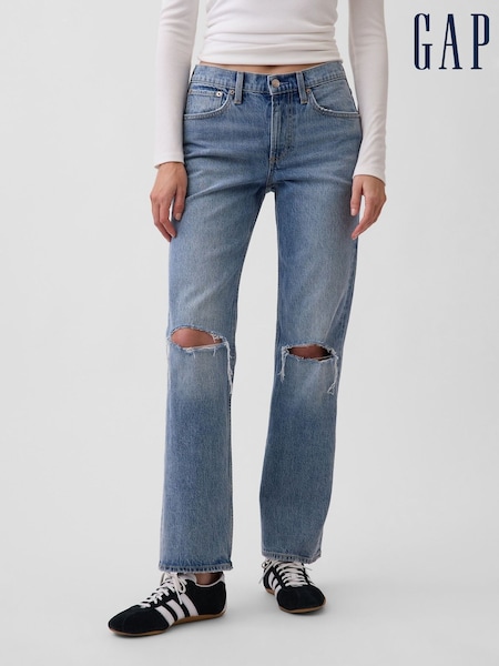 Gap Medium Wash Mid Rise Relaxed Straight Jeans