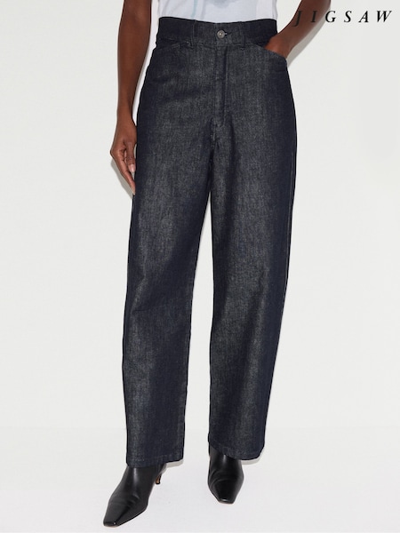 Jigsaw Blue Wide Fit Tyne Wide Leg Cropped Jeans