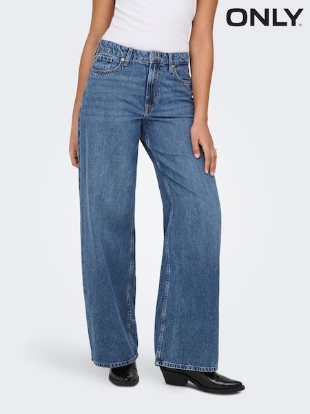 ONLY Medium Blue High Waisted Wide Leg 100% Cotton Jeans
