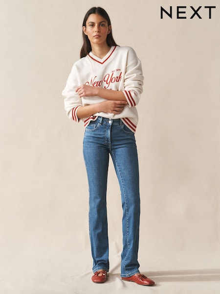 Denim Rinse Seamed Mid Rise Bootcut Jeans