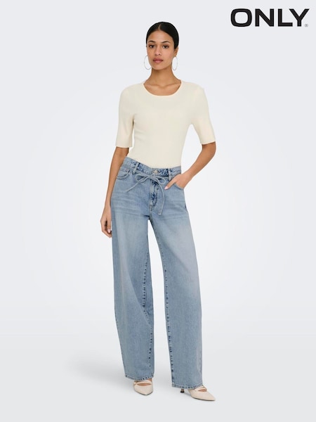 ONLY Blue Mid Waist Relaxed Barrel With Tie Belt Jeans