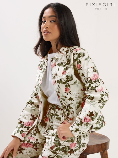 PixieGirl Petite White Floral Stretch Denim Wide Leg Joggers