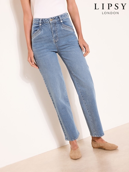 Lipsy Mid Wash Blue Petite Straight Crop Leg Jeans