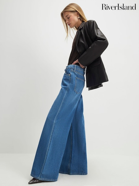 River Island Blue High Rise Soft Wide Leg Jeans