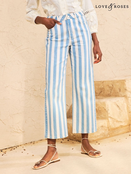 Love & Roses Mid Blue Crop Wide Plait Detail Jeans