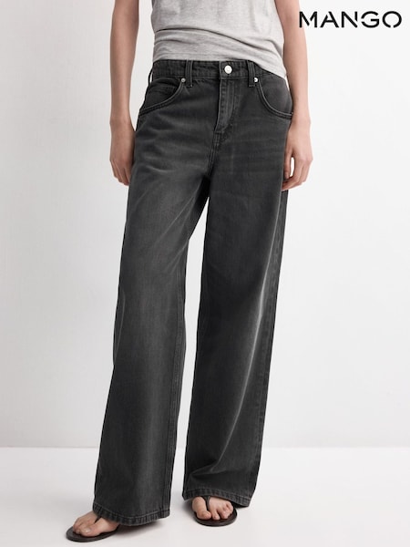 Mango Grey Low Waisted Relaxed Straight Leg Jeans