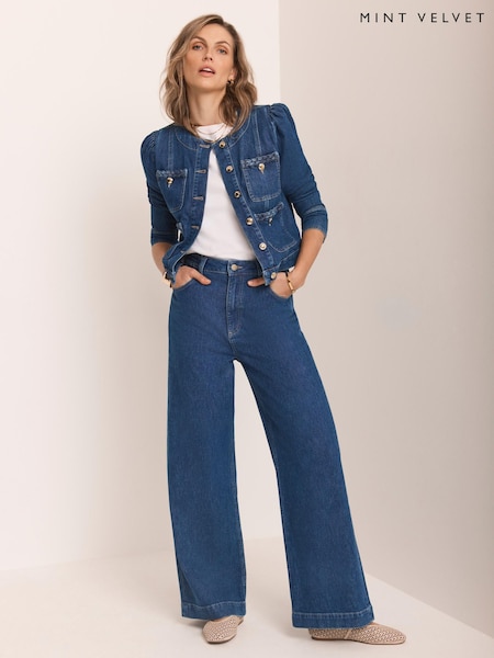 Mint Velvet Blue Denim Plait Detail Wide Jeans