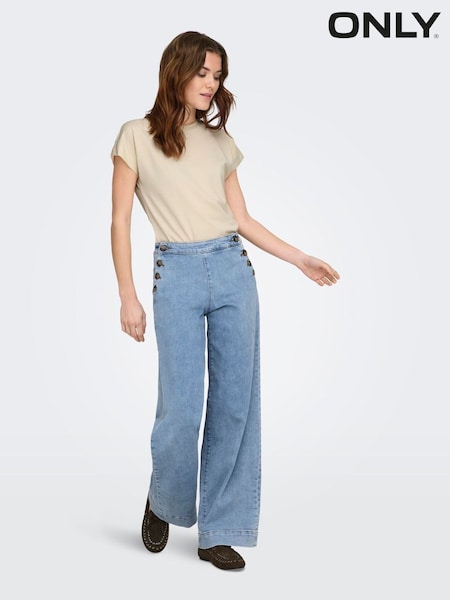 ONLY Blue High Waist Wide Leg Button Front Jeans With Super Stretch