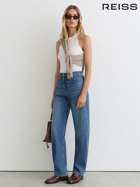 Reiss Mid Blue Addie Wide-Leg Jeans