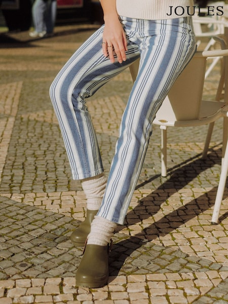 Joules Blue Striped Straight Fit Mid Rise Jeans
