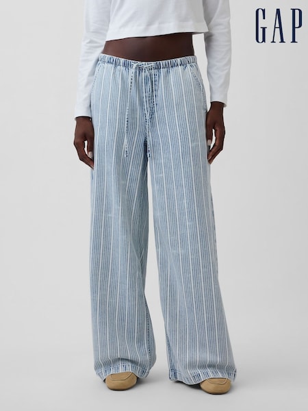 Gap Light Wash striped Mid Rise UltraSoft Easy Baggy Jeans