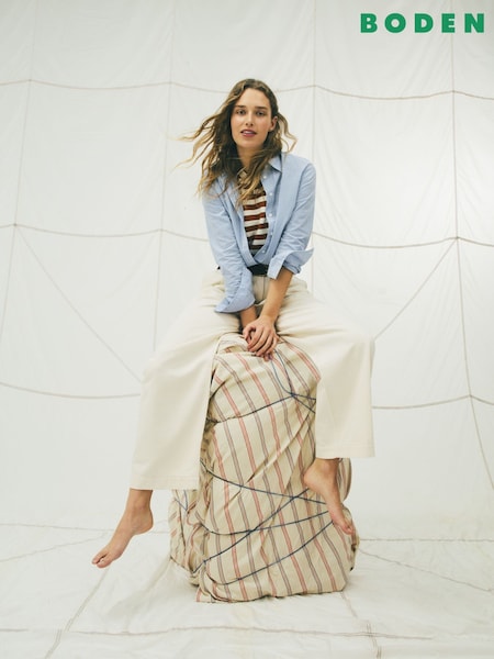 Boden Cream Pleated Wide Leg Jeans
