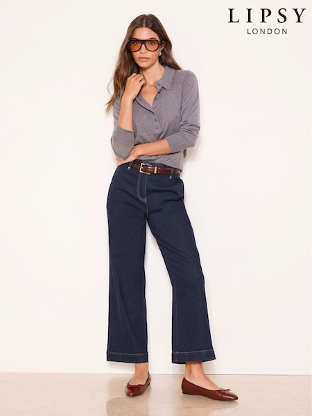 Lipsy Rinse Blue Wash Wide Crop Leg Jeans