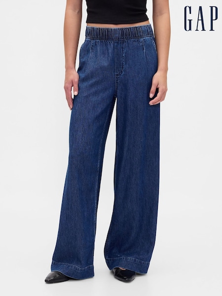 Gap Blue Mid Rise UltraSoft Pleated Baggy Jeans