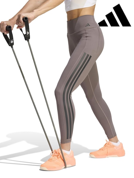 adidas Brown Optime Workout 3-Stripes 7/8 Leggings