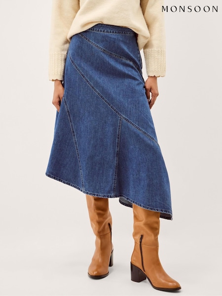 Monsoon Blue Annie Asymmetric Denim Midi Skirt