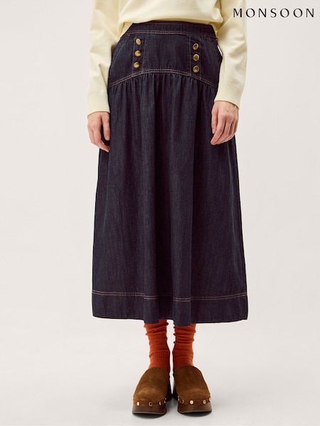 Monsoon Blue Tamsin Button Denim Midi Skirt
