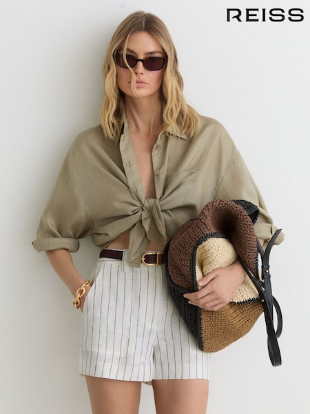 Reiss White Ashby Linen Chambray Shorts