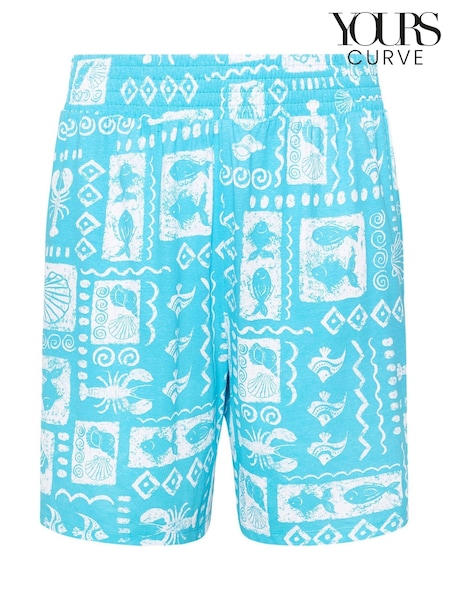 Yours Curve Blue Shirred Shorts