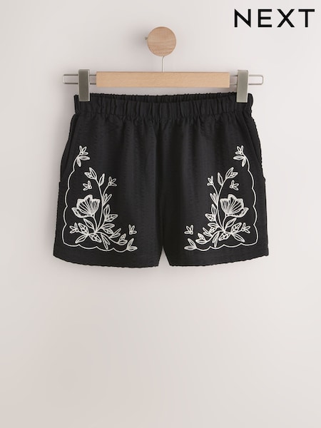 Black Jersey Embroidered Shorts