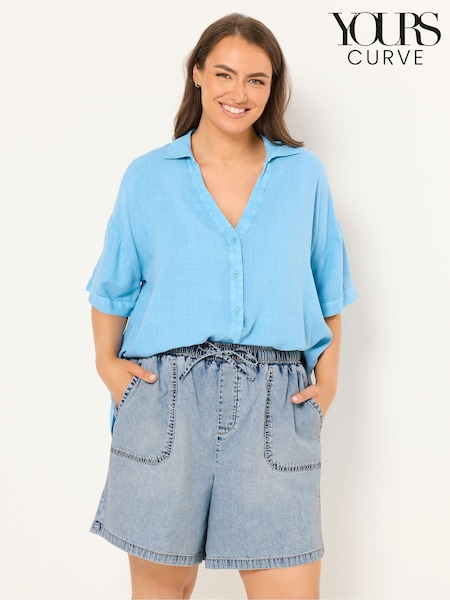 Yours Curve Light Blue Tie Waist Denim Shorts