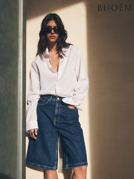 BHOEM Mid Rise Longline Denim Bermuda