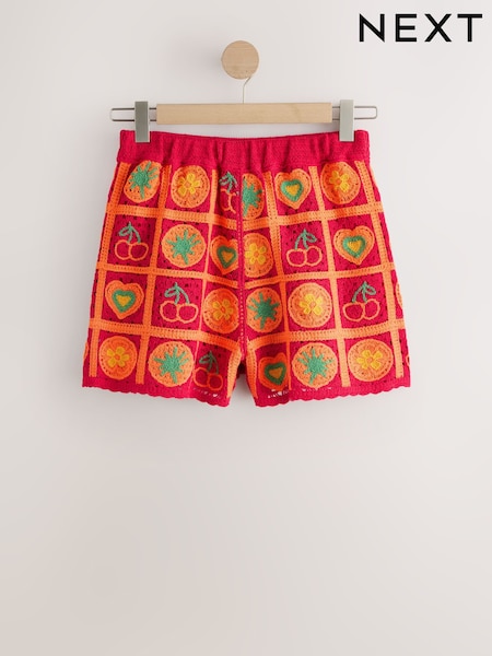 Red/Orange Tomato Crochet Co-Ord Cotton Shorts