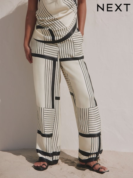 Black/White Stripe Linen Blend Wide Leg Trousers
