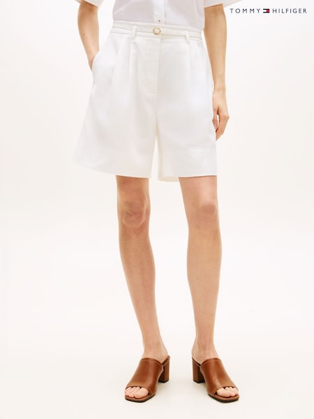 Tommy Hilfiger White Linen Blend Wide Leg Shorts