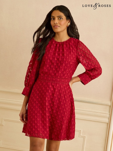 Love & Roses Red Heart 3D Crew Neck Mini Dress