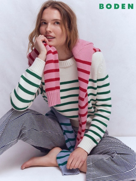 Boden Green Emilia Cotton Crew Neck Jumper