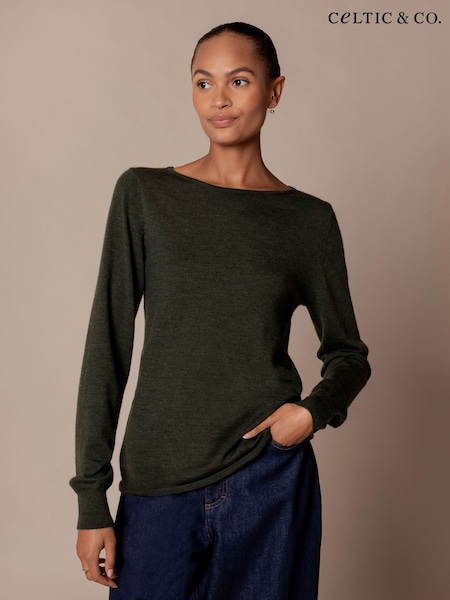 Celtic & Co. Green Fine Knit Boat Neck Jumper