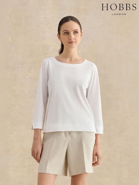 Hobbs White Alycia Slub T-Shirt
