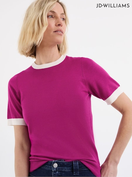 JD Williams Pink Contrast Tipping Half Sleeve Knitted T-Shirt