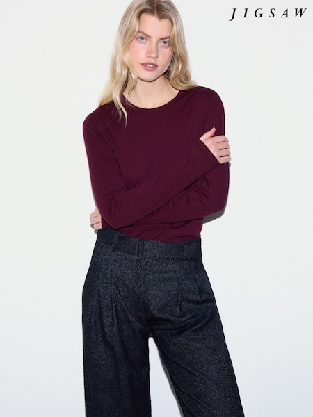 Jigsaw Red Long Sleeve 100% Cotton Top