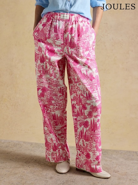 Joules Hallie Pink Printed Pull On Cotton Trousers